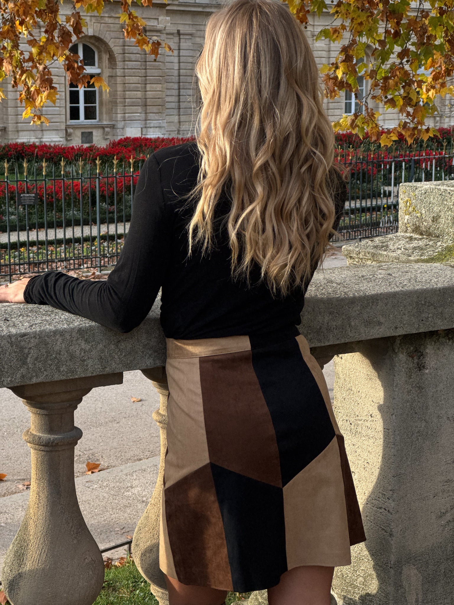 Cette jupe patchwork en suédine offre un look tendance et chaleureux, parfait pour l’automne et l’hiver. Son mélange de panneaux colorés noir, marron, beige crée un design géométrique moderne qui met en valeur la silhouette. Polyvalente, elle se porte aussi bien avec un pull, un col roulé ou une chemise.