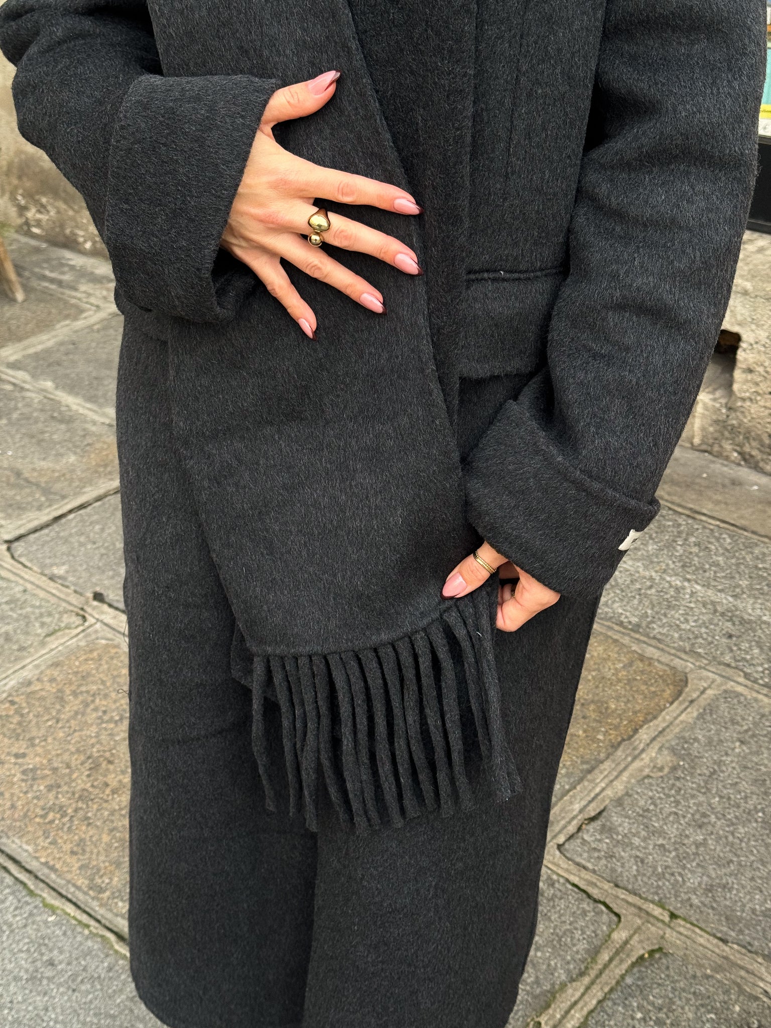 Élégant et ultra-chic, ce manteau long se distingue par son écharpe intégrée, un détail sophistiqué qui apporte à la fois style et chaleur. Son design minimaliste et moderne sublime toutes les silhouettes, tandis que sa coupe droite et ample offre un confort optimal pour l’automne et l’hiver.