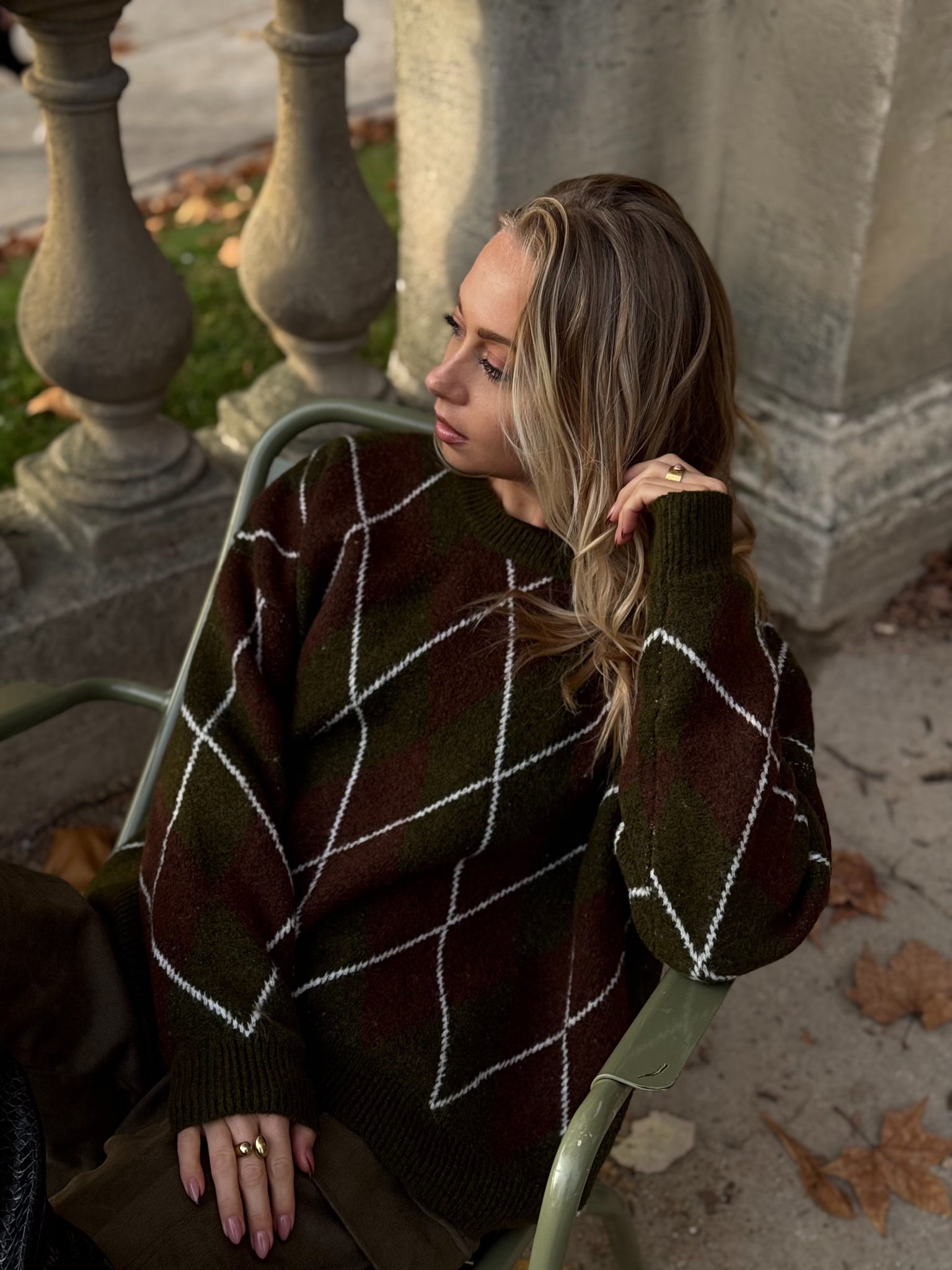 Ce pull chaud et tendance présente un motif argyle classique revisité dans des teintes automnales profondes. Sa coupe légèrement oversize apporte un look moderne et décontracté, parfait pour la saison froide. Doux au toucher, il offre un confort optimal tout au long de la journée.