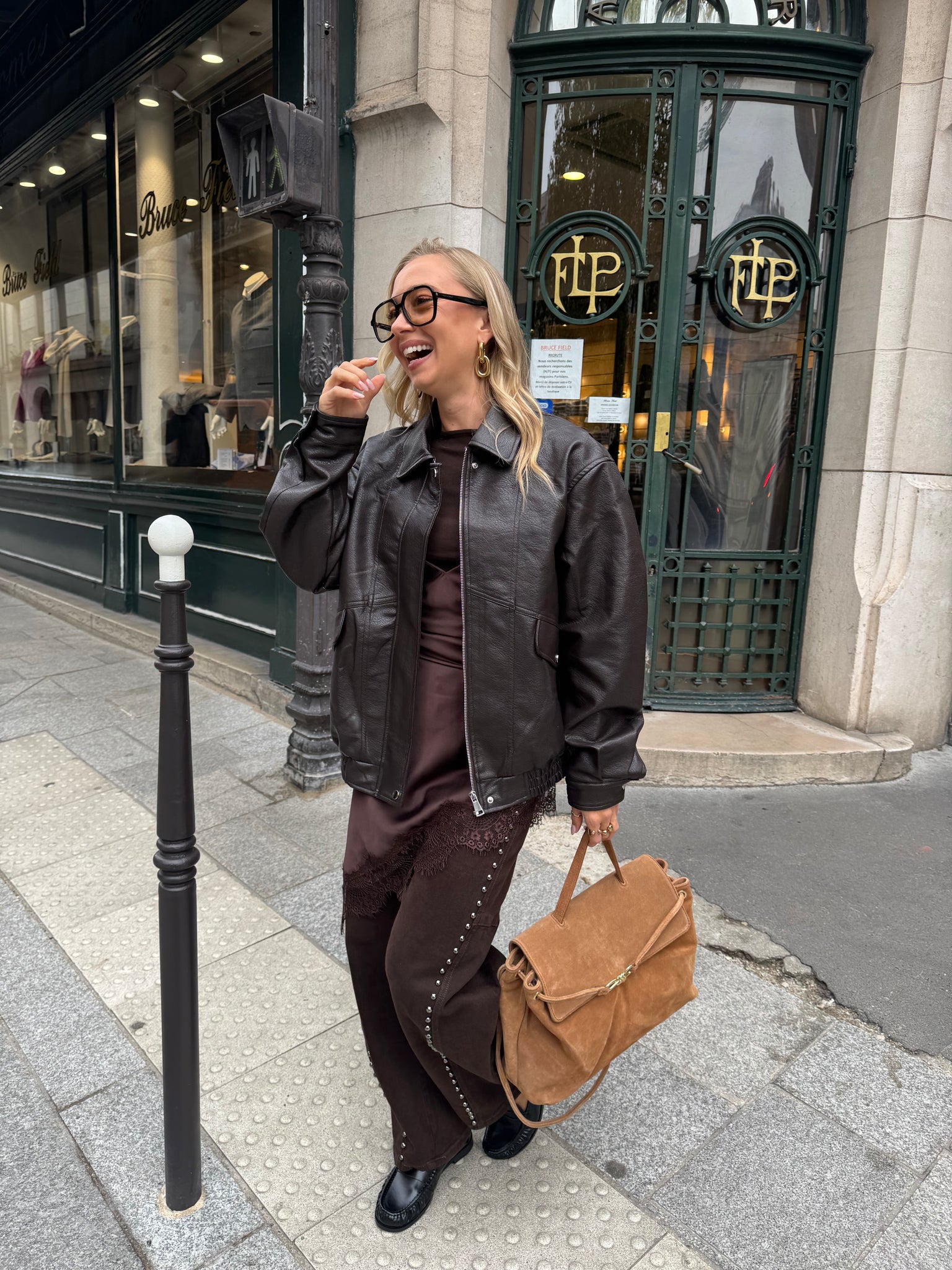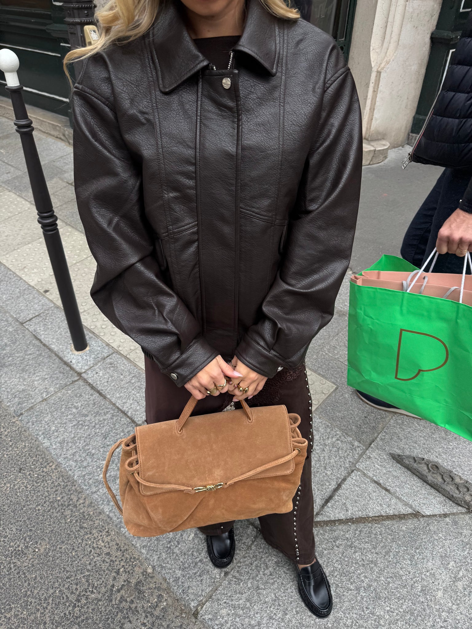 La veste “Amandine” apporte une touche de caractère à vos tenues avec son look intemporel en simili cuir marron. Sa coupe légèrement oversize et ses détails modernes la rendent idéale pour un style décontracté ou chic. C’est la pièce parfaite pour une allure à la fois audacieuse et élégante.