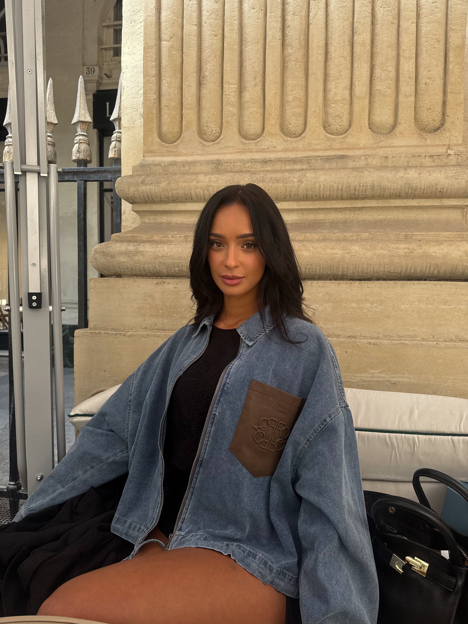 Affirmez votre style avec cette veste en jean oversize à la coupe moderne et décontractée. Son design se distingue par une poche contrastante effet cuir brodée, qui ajoute une touche originale et tendance. Parfaite pour les mi-saisons, cette veste est un véritable indispensable à superposer sur toutes vos tenues.