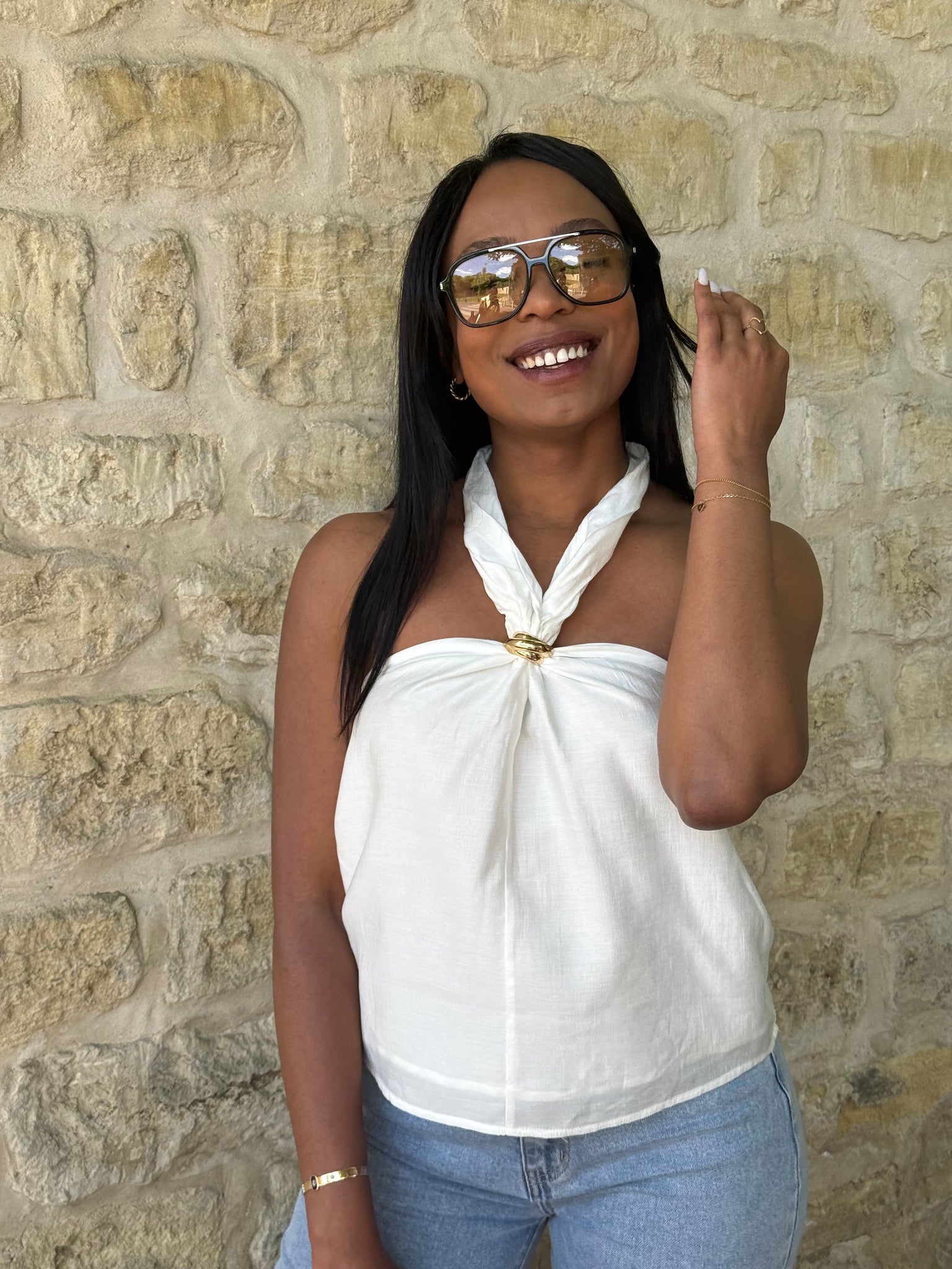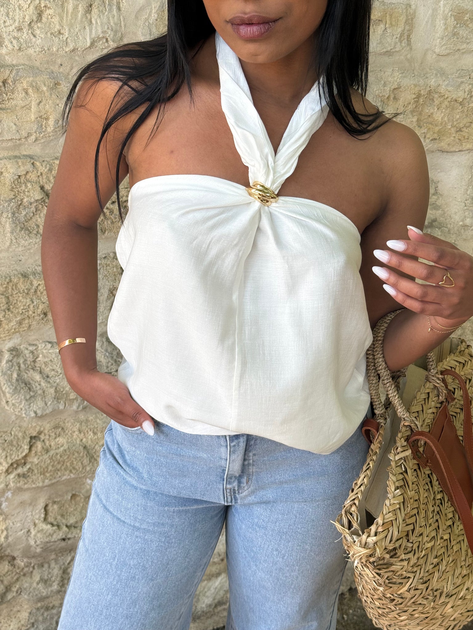 Léa, le top blanc à la fois minimal et raffiné, qui fait toute la différence.