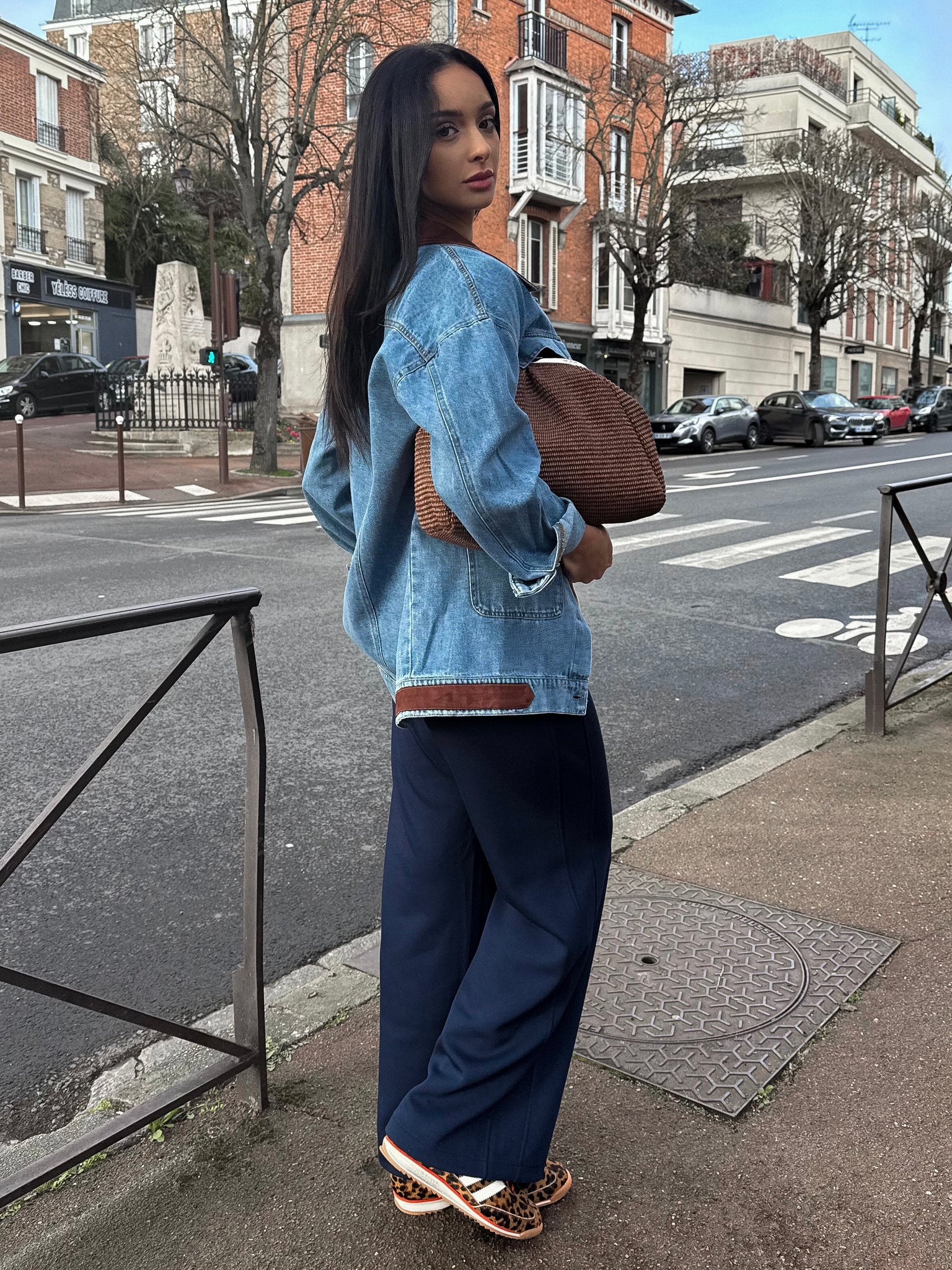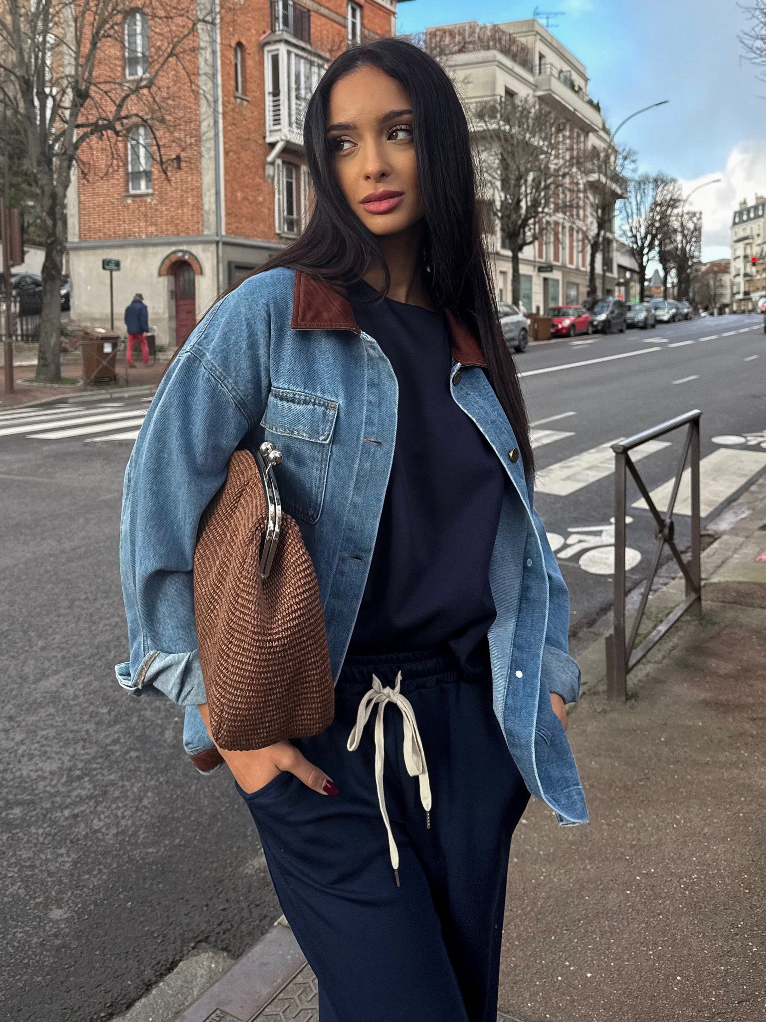 Veste Capucine – Denim oversize & détails en daim